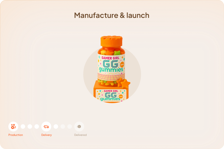 When you’re ready, Dough connects you to trusted suppliers. Get your product made, packaged, and shipped — and start growing real sales